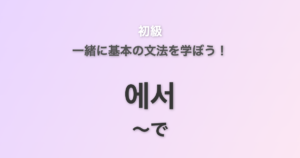 【初級・文法】에서 を学ぼう!